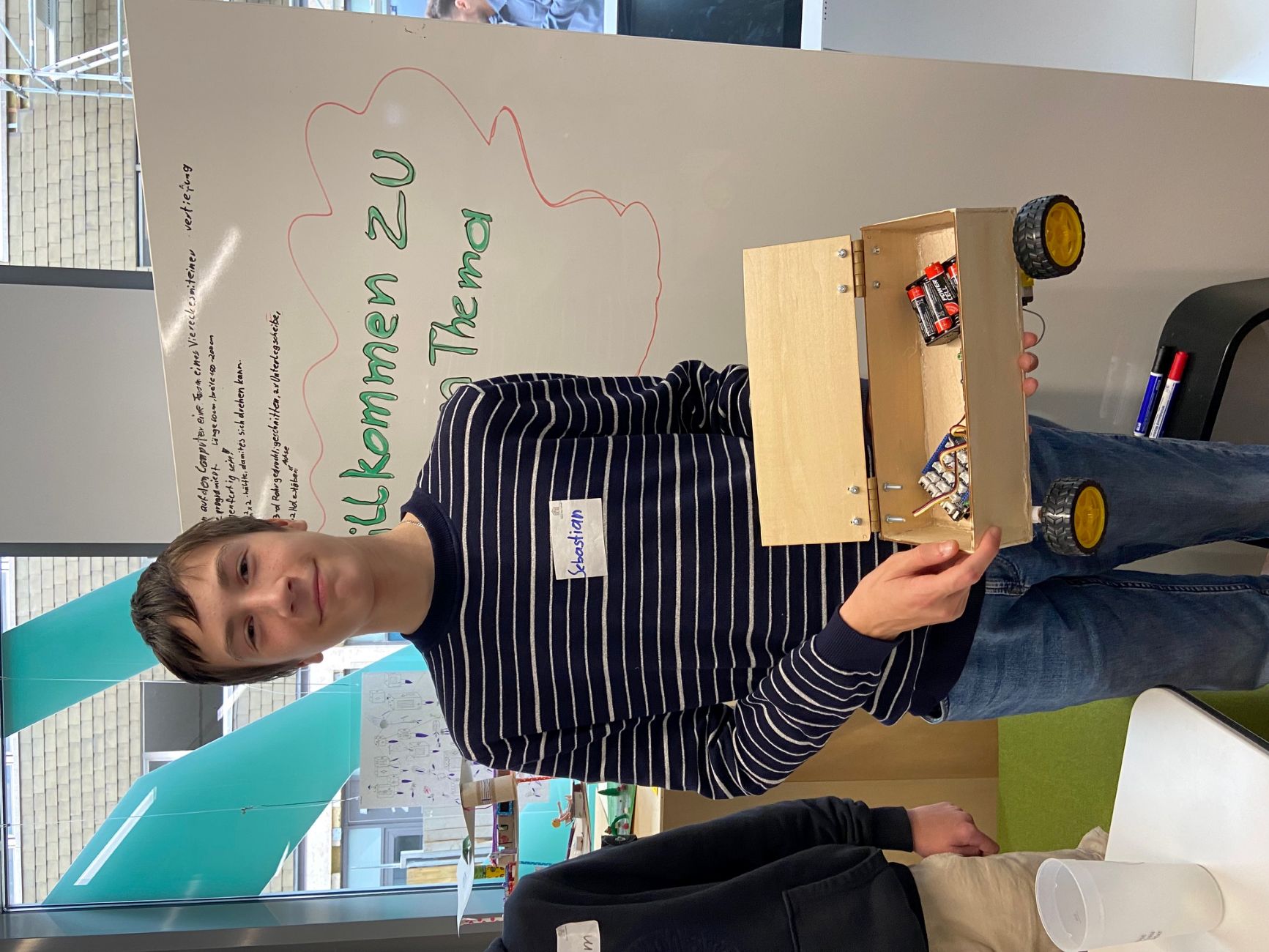 Vom 17. bis 19. Oktober 2025 fand im Rahmen der Science Week „Stadt der Zukunft“, in den Räumen des Triangel-Gebäudes am Kronenplatz in Karlsruhe, ein interessantes Angebot für technikbegeisterte Jugendliche statt: Ein Makeathon unter dem Titel „Smart in der Stadt der Zukunft”. Unter Makeathon versteht man hierbei eine Veranstaltung, bei der Teams über einen kurzen, festgelegten Zeitraum hinweg technische Prototypen und innovative Lösungen entwickeln und umsetzen. Die Veranstaltung beim Kooperationspartner der RSL begann am Freitag den 17.10.2025 bereits um 14 Uhr und ging bis 19 Uhr. Am Samstag waren wir bereits ab 10 Uhr bis 19 Uhr vor Ort und am Sonntag bereits ab 9 Uhr. Ab 14 Uhr kamen dann die Eltern dazu und konnten nach einer Einführung unsere Projekte bestaunen. Die Veranstaltung endete um ca. 15 Uhr mit der Ausgabe eines Zertifikats an alle Teilnehmenden. Etwa 17 Schüler ab Klasse 7 unterschiedlicher Schulen aus Karlsruhe und Umgebung nahmen daran teil. Wir wurden zunächst in vier Gruppen aufgeteilt. Ich arbeitete in den drei Tagen mit vier neuen Freunden an einem Fahrzeug, welches vorerst durch uns ferngesteuert wurde, in der Zukunft jedoch von einer Kl gesteuert werden soll. Dabei konnte ich verschiedene Methoden und Werkzeuge der modernen Fertigung kennenlernen und anwenden. Darunter 3D Druck, Lasercutting sowie den Umgang mit unterschiedlichen Sensoren, Aktoren und Mikrokontrollern. Dazu habe ich gelötet, geschliffen, gesägt und weitere Aufbauarbeiten erledigt. Die anderen Jugendlichen und ich wurden dabei von den Studenten der Fakultät für Elektrotechnik und Informationstechnik unterstützt. Die anderen Gruppen arbeiteten an ihren eigenen Projekten. Neben den Arbeiten konnten wir uns unterhalten und hatten dabei eine Menge Spaß. An Essen und Trinken hat es auch nicht gefehlt. Am Samstag aßen wir alle zusammen Pizza. Es war zwar anstrengend aber doch auch sehr schön.